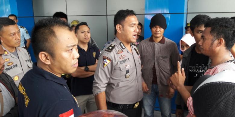 Mahasiswa bersitegang dengan polisi dan petugas imigrasi saat mereka berusaha mencegat mobil yang memuat Tenaga Kerja Asing di kantor Imigrasi Kendari